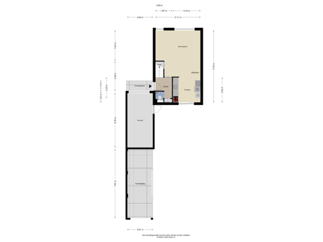 De entree van de woning is aan de zijkant. De voordeur ligt onder een carport voor de garage. Je komt binnen in de hal. Hier is ook het toilet, de meterkast en de trap naar boven. Vanuit de hal loop je door naar de woonkamer met halfopen keuken. De woonkamer ligt aan de voorzijde en heeft veel inval van daglicht door de grote raampartijen. Het geheel is afgewerkt met een parketvloer in de woonkamer en homegrind in de keuken. In de woonkamer is een trapkast waarin je je voorraad kunt opbergen. De halfopen keuken ligt aan de achterzijde van de woning. De keuken heeft een opstelling aan beide kanten en is voorzien van diverse inbouwapparatuur zoals een inductiekookplaat, vaatwasser en combimagnetron. Ook is er lekker veel kastruimte. In de keuken is de schuifpui naar de achtertuin.