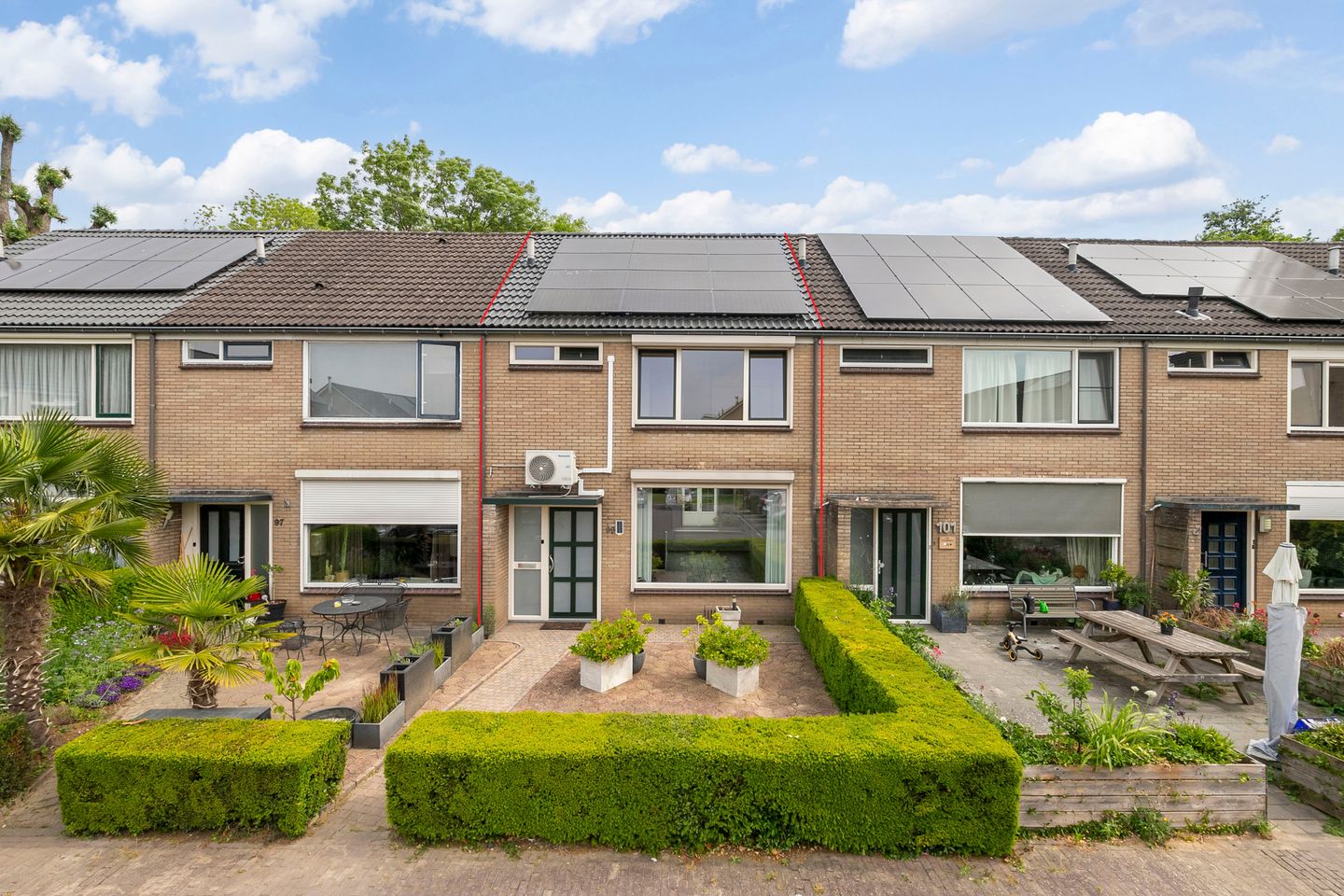 - Airconditioning, dakraam, glasvezelkabel, natuurlijke ventilatie, rolluiken, en zonnepanelen