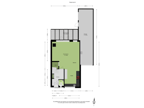 - 53 m² (5,70 meter diep en 9,30 meter breed)