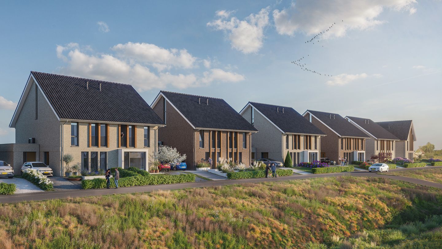 Nieuwbouw Oevers Roode Vaart. De verkoop is gestart van 18 twee-onder-een-kap-woningen en 3 vrijstaande woningen in project Oevers Roode Vaart in Zevenbergen.