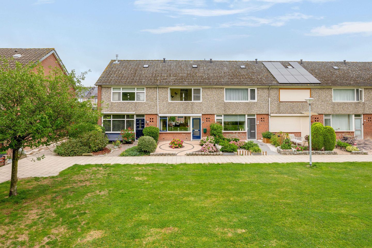 De verzorgde achtertuin op het oosten biedt volop ochtendzon en privacy dankzij de achterom en groenrijke afwerking. Aan het einde van de tuin staat een ruime, stenen berging voor opslag of een werkplek. De ligging van de voortuin aan de waterzijde en zonder verkeer maakt het buitenleven hier ook extra aangenaam.
