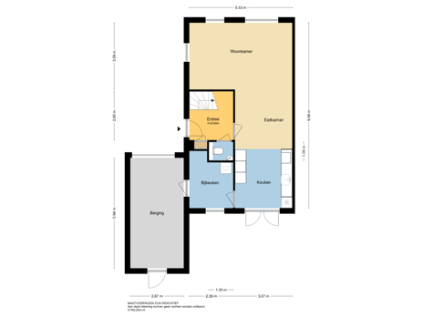 Zij-entree/hal met trapopgang naar de eerste verdieping, meterkast en toilet, toegang tot de L-vormige woonkamer met opstelplaats voor de keuken aan de tuinzijde en openslaande tuindeuren, vanuit de keuken toegang tot de bijkeuken met opstelplaats voor de wasapparatuur, unit warmtepomp met voorraadvat en toegang tot de garage welke is voorzien van openslaande garagedeuren en loopdeur naar de achtertuin.