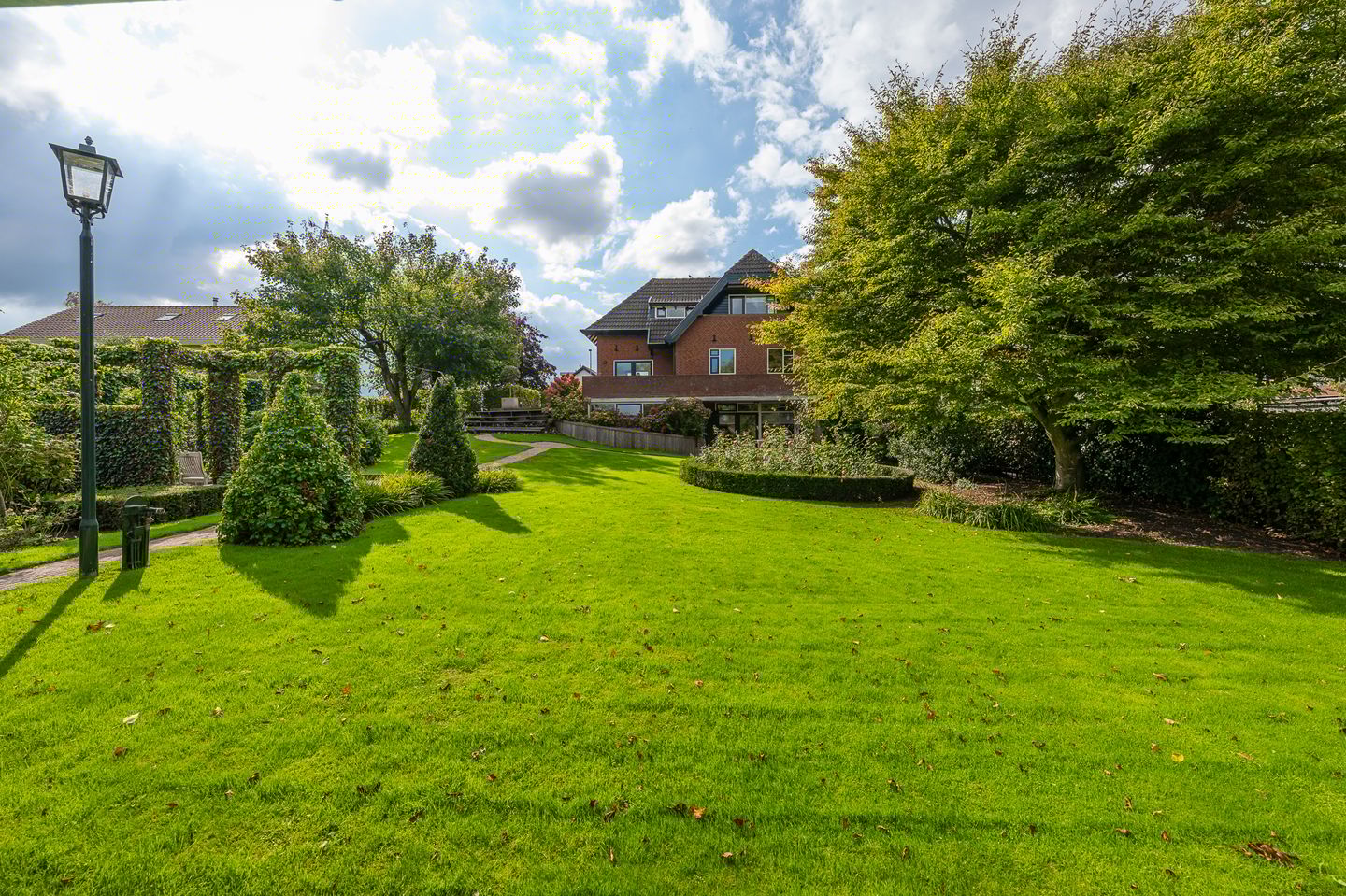 Het souterrain is de kers op de taart! Dankzij de openslaande deuren naar de tuin is dit een lichte en praktische ruimte, perfect geschikt als praktijk, kantoor of gastenverblijf. Via een inpandige trap bereikt u de open leefkeuken en de riante woonkamer met een sfeervolle open haard. Dit vormt samen het hart van de woning en staat in het teken van gezellig samen zijn. De marmeren vloer met vloerverwarming zorgt voor warmte en klasse. Op de eerste verdieping bevinden zich drie ruime slaapkamers. De badkamer is tot in detail verzorgd met een riante inloopdouche, dubbele wastafel met natuurstenen blad, toilet en een fraaie granito vloer. Hier waant u zich in een heerlijke spa. De tuin rondom de woning is een lust voor het oog. Met diverse terrassen, een royale overkapping geniet u hier van het buitenleven. Het geheel is stijlvol aangelegd en goed onderhouden. Via de eigen brug aan de voorzijde van het huis bereikt u het eigen ruime erf met voldoende parkeerplek. Met een gietijzeren hek kunt u het erf afsluiten. Op de begane grond is een berging voor bijvoorbeeld uw fietsen. Naast het souterrain vindt u nog een zeer ruime berging, met een sauna. Deze ruimte kan tevens dienen als werkplaats.
