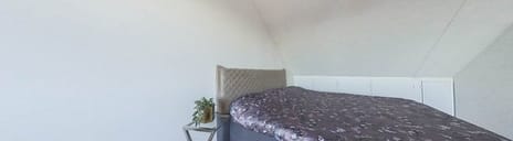 De tweede verdieping biedt nog een extra slaapkamer, bereikbaar via de voorzolder waar ook de aansluitingen voor de wasmachine en droger zijn. Dankzij de dakkapel aan de achterzijde is deze kamer verrassend licht en voelt hij ruim aan.