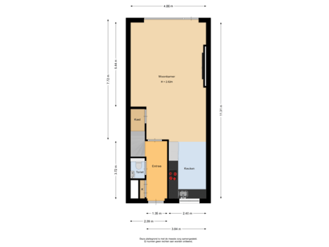 - 42 m² (7,63 meter diep en 5,46 meter breed)