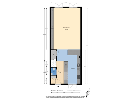 - 50 m² (9,32 meter diep en 5,40 meter breed)