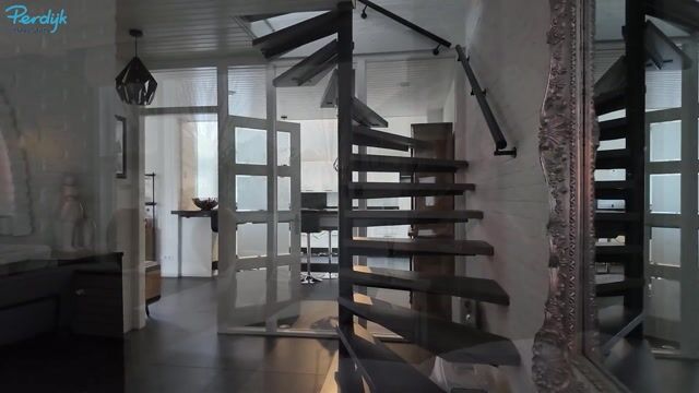 Je komt binnen in een ruime hal met garderobenis, meterkast, toilet, twee karakteristieke stalramen en de trap naar boven. Vanuit hier loop je zo de woonkamer met open keuken in.