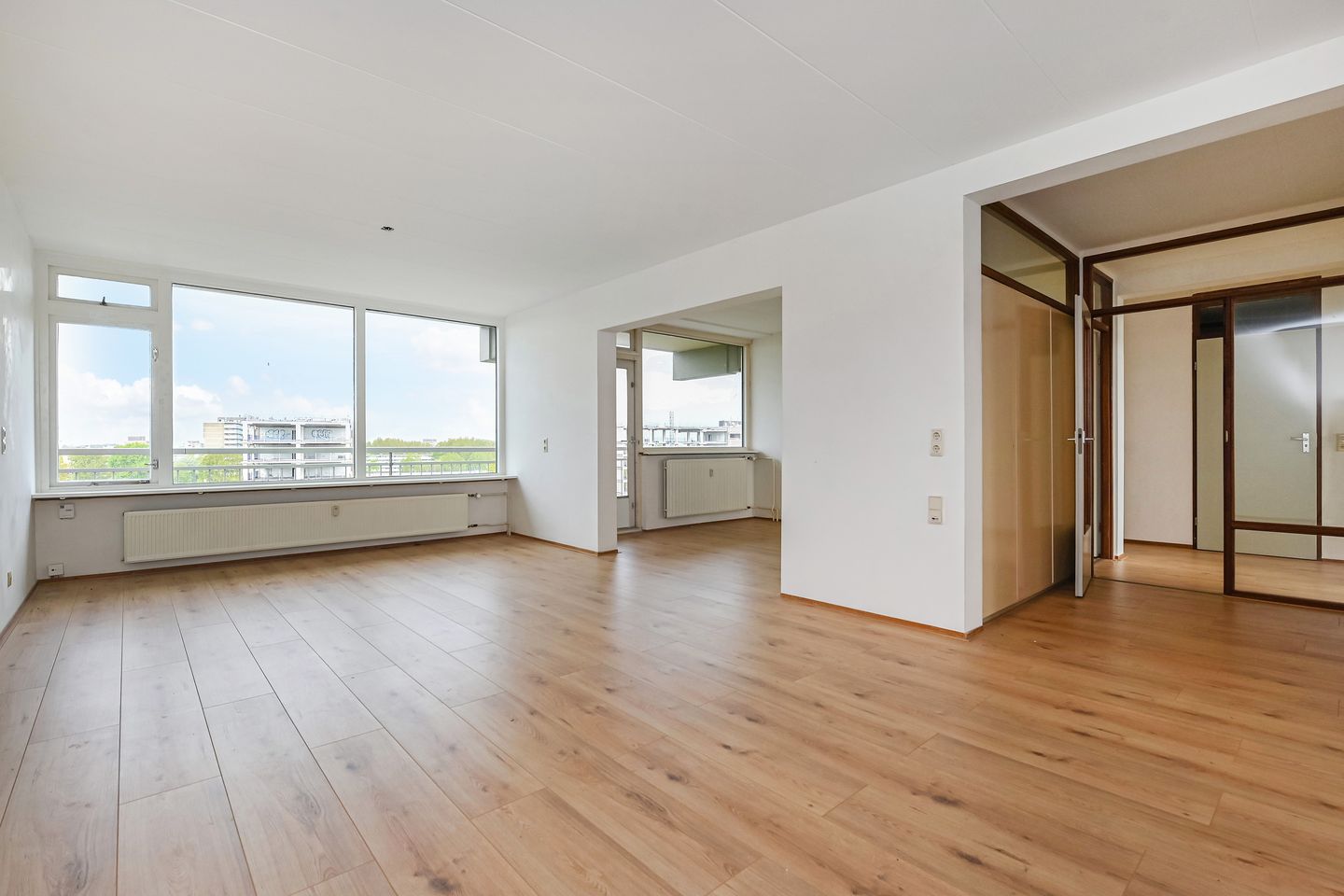 Vanuit de hal kom je in de ruime woonkamer van circa 30m², welke in open verbinding staat met naastgelegen eet/slaap/studeerkamer van circa 12m², waardoor er een extra ruimtelijk gevoel wordt gecreëerd. Deze kamer geeft ook toegang tot het balkon van circa 11m², welke is gelegen op het Westen en geeft een zeer fraai uitzicht over de omgeving.
