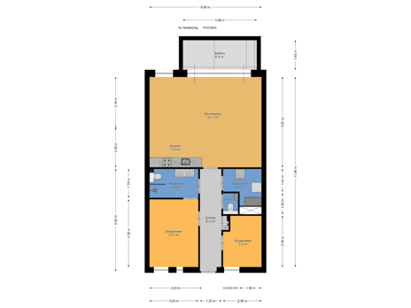 Terug in de hal zijn er twee slaapkamers van respectievelijk circa 13m² en 7m², welke aan de galerijzijde zijn gesitueerd.