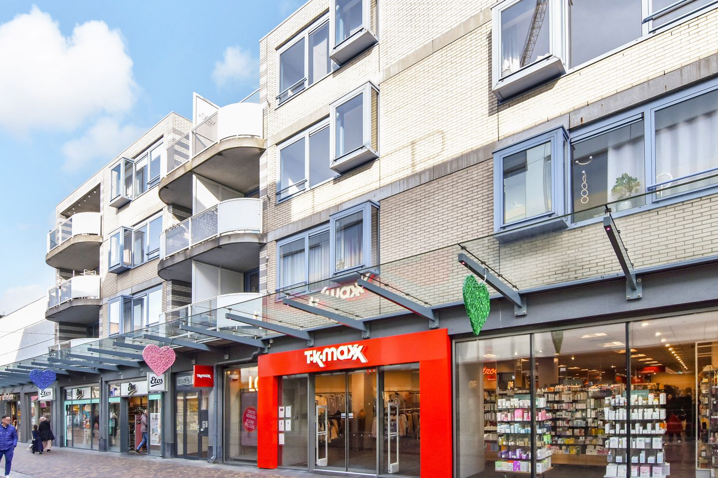 Het gebouw bestaat uit drie woonlagen, waarvan de hoofdentree direct op het winkelniveau is gelegen en is uitgevoerd met een centrale hal met bellentableau, een lift en een trappenhuis.