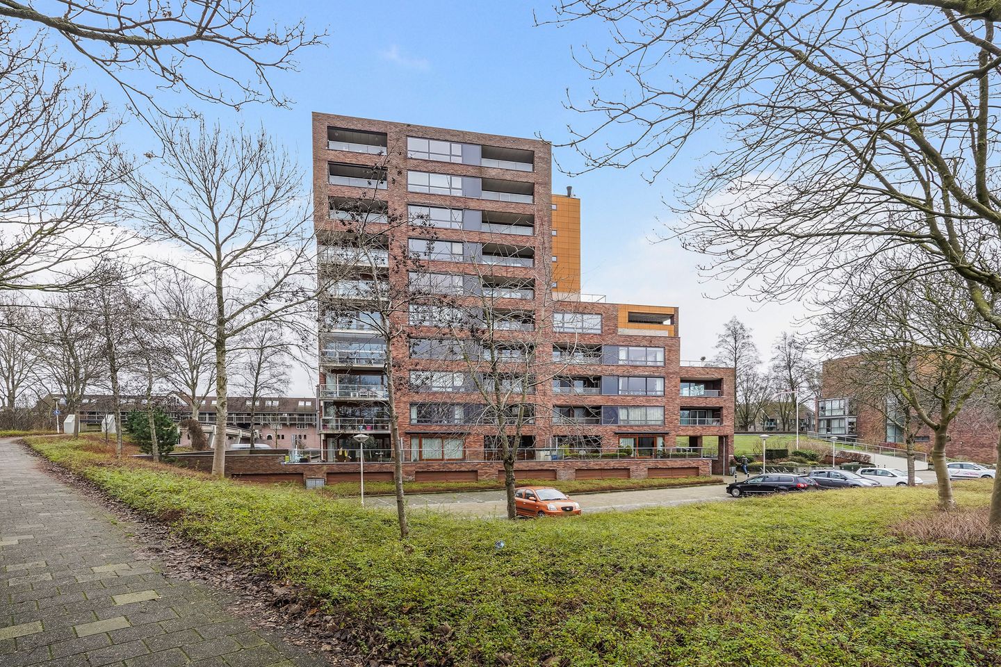 Afgesloten entree met brievenbussen-/en bellentableau, lift welke toegang geeft tot de woning op de 8ste verdieping. Entree woning, ruime hal welke toegang geeft tot alle vertrekken. De woonkamer is een genot om in te vertoeven, de grote raampartijen, de ruimte en het uitzicht maken de woning uniek. De woonkamer is ruim opgezet, heeft een schuifpui naar het prettige balkon en een ruime open keuken. De keuken is modern uitgerust en voorzien van Bora inductie kookplaat met geïntegreerd afzuigsysteem, magnetron, oven, koel-/vriescombinatie, vaatwasser en kunststof aanrechtblad. De ouderslaapkamer is ruim opgezet en v.v. grote inbouwkast, ook de naastgelegen logeer-/studeerkamer is v.v. een inbouwkast. De badkamer is onlangs vernieuwd en v.v. ruime inloopdouche met zitbank, regen en handdouche, dubbele wastafel en handdoekradiator. Het separate toilet is eveneens keurig netjes. Technische ruimte alwaar opstelplaats wtw unit, wasmachine-/droger en cv-combi ketel. De meterkast bevindt zich in de (centrale) hal.