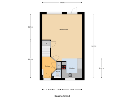 - 57 m² (11,00 meter diep en 5,20 meter breed)