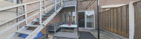 We hebben de woonkamer en keuken naar de eerste etage verplaatst om dat uitzicht optimaal te benutten. Daardoor is de begane grond nu een ruimte met eindeloze mogelijkheden — een hobbykamer, kantoor of zelfs een mancave. Deze ruimte heeft bovendien een aparte ingang, los van het leefgedeelte van het huis. Ideaal voor wie werk en privé graag gescheiden houdt. De tuin ligt op de zon. Vooral aan de rechterzijde is het heerlijk vertoeven; daar liggen we regelmatig uit de wind te genieten zodra de zon zich laat zien (en dat is in Nederland vaker dan je denkt). Voor wie liever een traditionele indeling wil met de woonkamer op de begane grond: dat is eenvoudig te realiseren. Door één muurtje te verwijderen en de keuken weer beneden te plaatsen (alle leidingen liggen er nog), heb je zo de oorspronkelijke indeling terug.