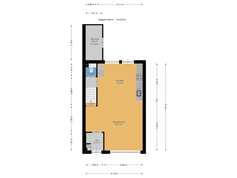 - 51 m² (9,78 meter diep en 5,20 meter breed)