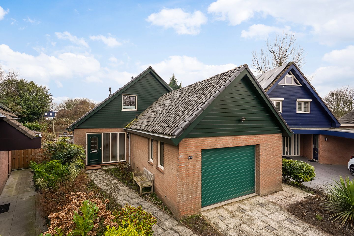 Aan de voorzijde van de woning bevindt zich een inpandige garage van ca. 25 m², voorzien van een elektrische deur en een grote vliering: perfect voor parkeren, wasruimte, opslag en hobbyruimte. Voor de garage kunt u op eigen terrein ook nog 1 auto parkeren.