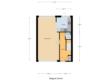 Begane grond: Entree hal met de meterkast, trapopgang en een luxe toiletruimte met closet en fonteintje. De ruime woonkamer (type doorzon) is (ca. 7.50 m x 3.70 m / deels 3.10 m grenzend aan de open keuken) met veel lichtinval. Aan de voorzijde heeft u bij deze woning een vrije zichtlijn langs woningen. De net afgewerkte en luxe open keuken (ca. 2.45 m x 2.50 m) is bereikbaar via de woonkamer; de keuken is voorzien van diverse nieuwe inbouwapparatuur. De zonnige achtertuin (ca. 6.40 m x 10.40 m) is op het westen georiënteerd, heeft een stenen schuur (ca. 2.30 m x 3.80 m) en een achterom.