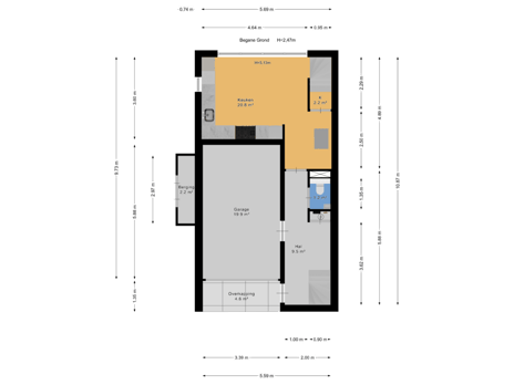 - 88 m² (11,00 meter diep en 8,00 meter breed)