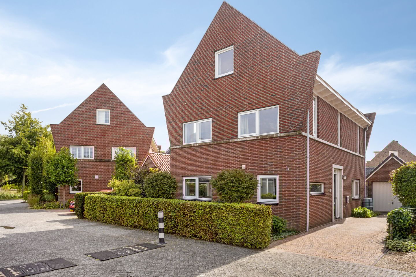 U komt aan op een rustig gelegen en brede kavel met een verzorgde voortuin en oprit rechts naast de woning met toegang tot de woning, de achtertuin en garage