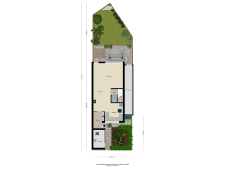 - 56 m² (9,66 meter diep en 6,71 meter breed)