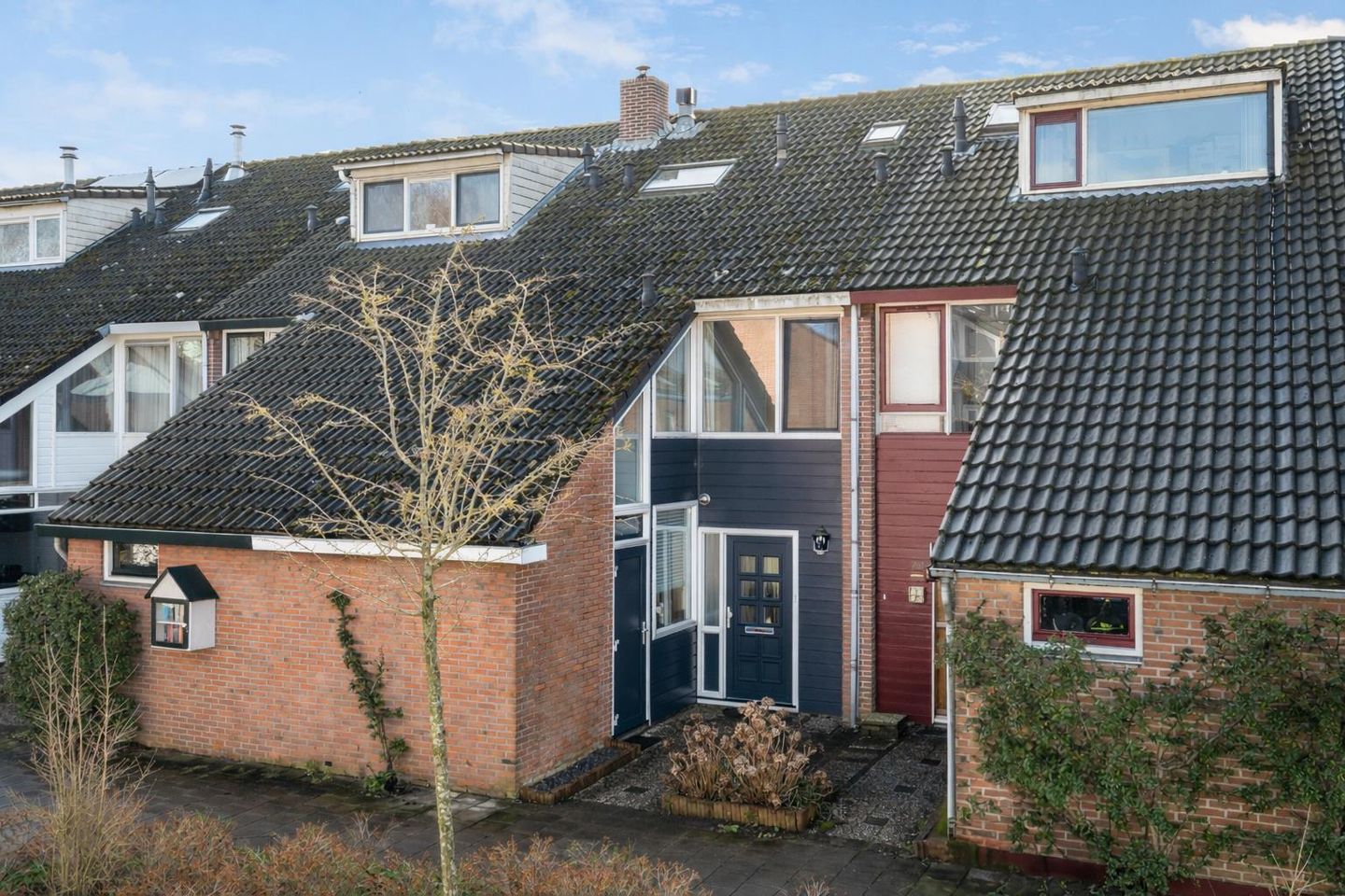- Buitenzonwering, dakraam, glasvezelkabel, rookkanaal, en zonnepanelen