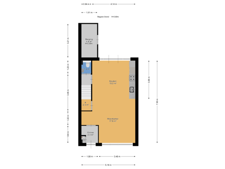 - 56 m² (10,30 meter diep en 5,40 meter breed)
