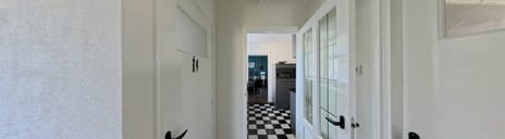 Via de hal betreedt u de woning. Hier vindt u de trapopgang, meterkast met 12 groepen (vernieuwd in 2009) en trapkast. Rechts ligt de woonkamer met grote raampartijen die zorgen voor veel lichtinval. De gaskachel geeft warmte en sfeer in de wintermaanden, heerlijk! Via de authentieke en-suite deuren bereikt u de eetkamer, die grenst aan de halfopen keuken. Deze keuken is vernieuwd in 2009 en uitgerust met diverse inbouwapparatuur waaronder een vaatwasser (2024), magnetron (2022), oven, inductiekookplaat met frituur gedeelte + afzuigkap. Vanuit de keuken loopt u door naar de achter hal met toegang tot het toilet, de bijkeuken en de slaapkamer met badkamer op de begane grond.