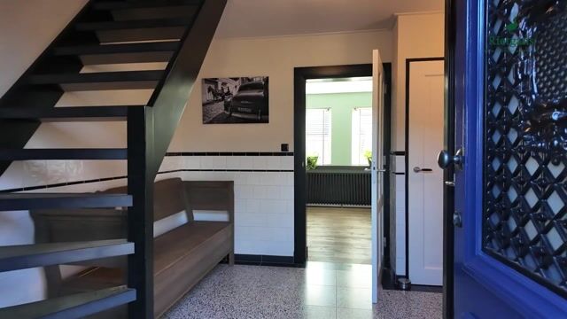 U stapt binnen in de entree waar direct de warme uitstraling van de woning voelbaar is. De vloer met klassieke tegels vormt een mooi contrast met de warme tinten die u verder in huis terugziet. Vanuit de hal heeft u toegang tot het toilet, de meterkast, de trapopgang naar de eerste verdieping en de woonkamer. Details zoals de bakelieten lichtschakelaars en de karakteristieke deur met glas-in-lood verraden dat hier met aandacht voor stijl en sfeer is gewerkt.