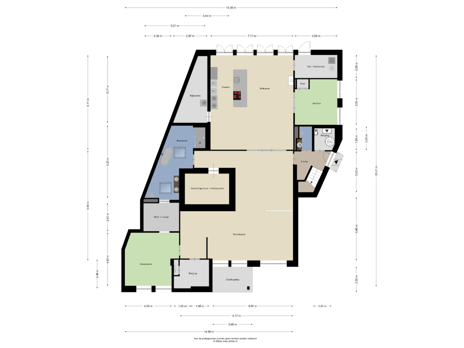 - 666 m² (34,23 meter diep en 19,45 meter breed)