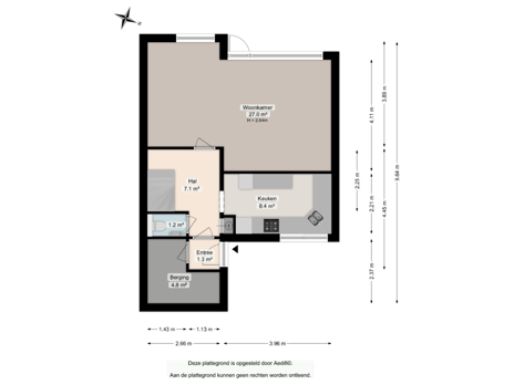 - 89 m² (12,65 meter diep en 7,00 meter breed)
