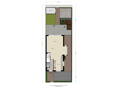 - 74 m² (9,24 meter diep en 8,03 meter breed)
