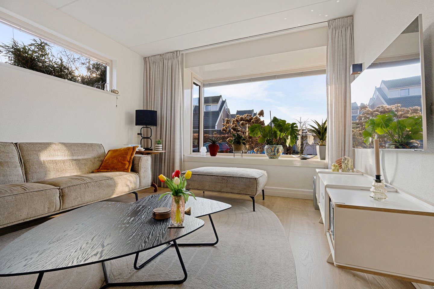 entree met meterkast en toilet, zonnige woonkamer (51 m2) met erker en schuifpui naar de achtertuin, moderne open keuken met inbouwapparatuur (geïntegreerde afzuiging, combi-oven, koelkast en vaatwasser) en bijkeuken met aansluiting voor wasmachine en droger, inpandige garage met bergzolder, vaste trap naar de ...