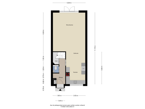 - 61 m² (12,00 meter diep en 5,10 meter breed)