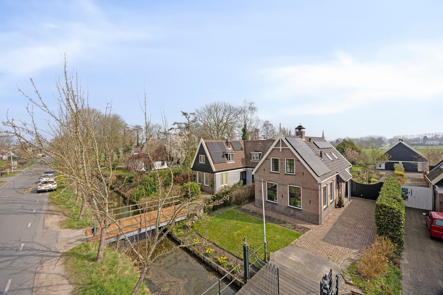 In de tuin is de garage omgetoverd tot multifunctioneel bijgebouw. Wat een waanzinnig sfeervolle ruimte is dit geworden. Er is een keukenblok, eetgedeelte en luxe badkamer met douche, wastafel en toilet. Ook is er een werkruimte aan de voorzijde. Op de verdieping zijn een zitgedeelte en een slaapkamer te vinden. Verder is er nog een bergruimte met garagedeur. Achter het bijgebouw is een zitje gecreëerd waarachter je in alle rust kan genieten van het historische polderlandschap.