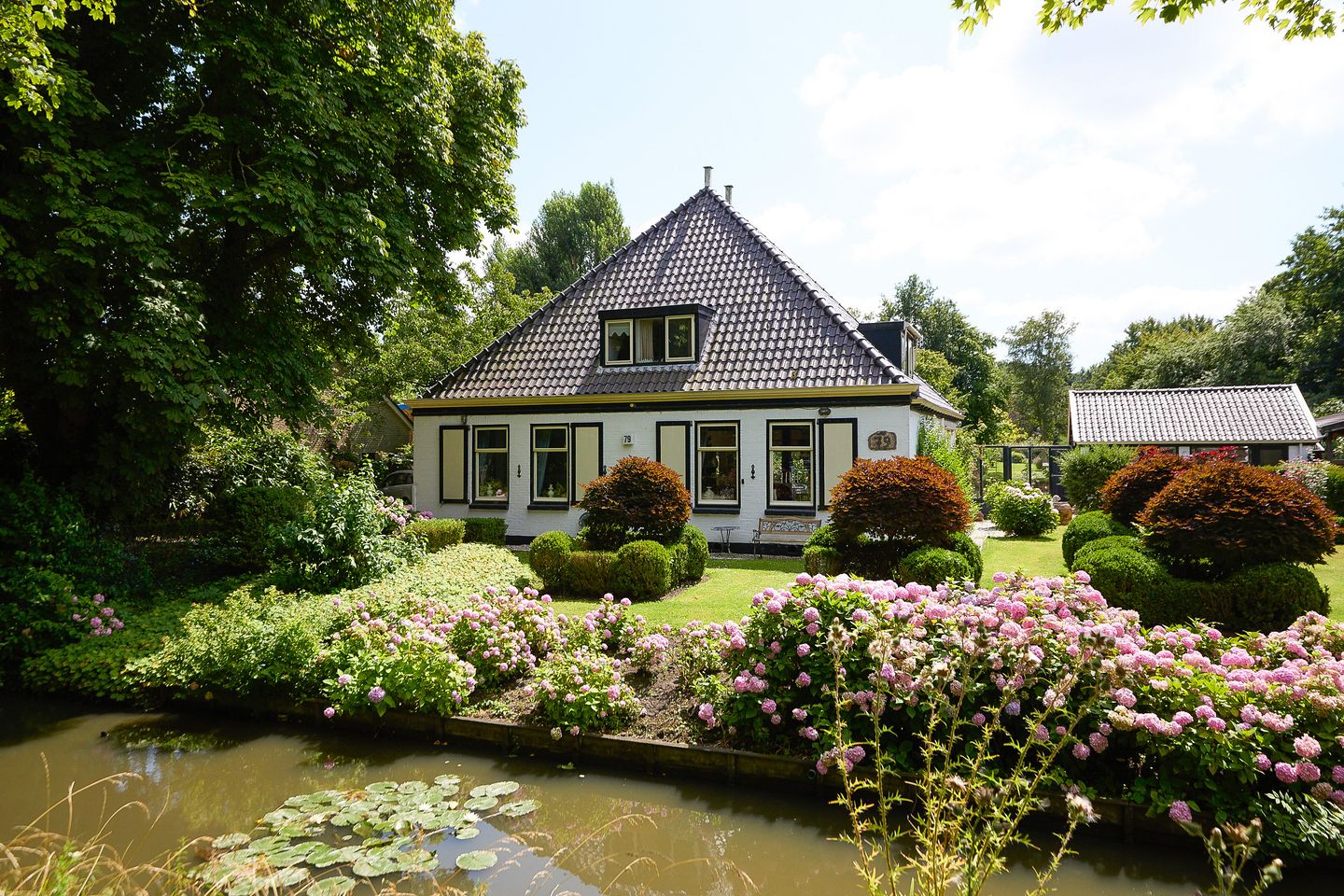 Deze woonboerderij is aan de voorzijde gelegen aan het water en beschikt over een afsluitbare oprit, een royale garage met carport, en een tuin die het woord ‘weids’ haast herdefinieert. Hier woont men tussen volwassen bomen, vijvers en bloeiende borders - een hof van Eden, inclusief een zwembad van indrukwekkende proporties: ruim 11 meter lang en bijna 6 meter breed.