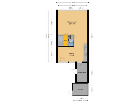 - 50 m² (9,00 meter diep en 5,50 meter breed)