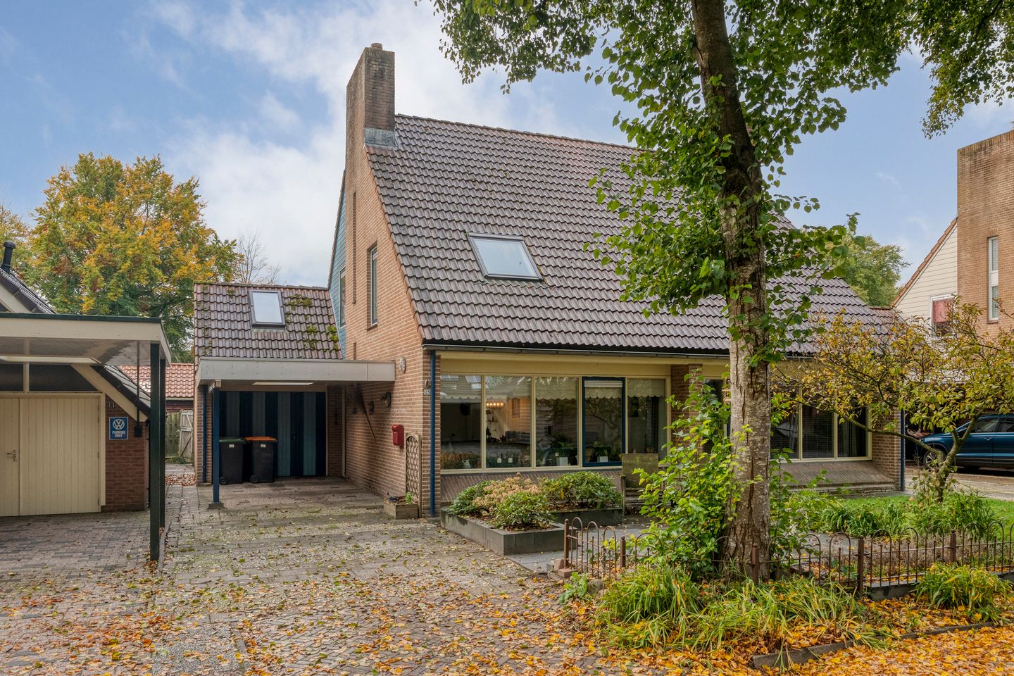 Er is een mooie aangebouwde garage met verwarming, dakraam en een bergzolder en voor de garage is een grote carport met lichtkoepel en ingebouwde spotjes in het plafond. Deze carport zorgt voor een beschutte en droge entree in het huis en een fijne overdekte parkeerplaats voor je auto. Daarvoor is er nog meer parkeerruimte op het eigen terrein voor een tweede auto. Achter het huis ligt een zongerichte tuin, met een achterom langs het huis, een zonneterras en er is een handige buitenkraan.