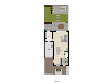 - 85 m² (9,60 meter diep en 8,90 meter breed)