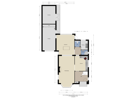 - 98 m² (8,50 meter diep en 11,50 meter breed)