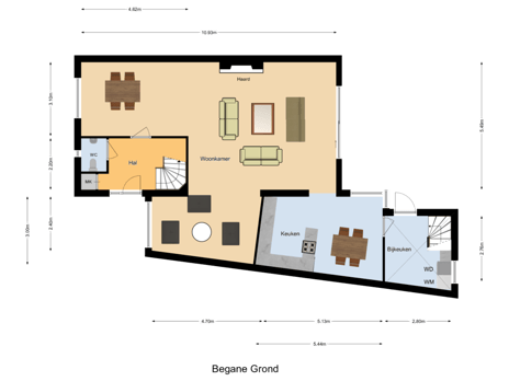 - 60 m² (10,50 meter diep en 6,20 meter breed)