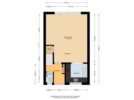 - 40 m² (6,96 meter diep en 5,74 meter breed)