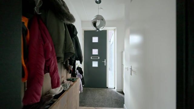 Aan het einde van de trap is een mooie, zwarte deur met glas. Deze zorgt ervoor dat er geen warmte vanaf beneden verloren gaat. Een ander voordeel is dat geluid wordt gedempt, waardoor de kinderen rustig kunnen slapen terwijl je met vrienden of familie aan het natafelen bent.