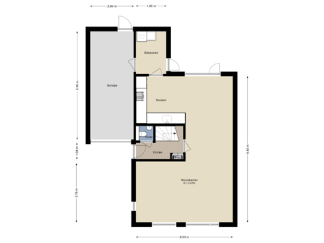 - 63 m² (11,02 meter diep en 5,69 meter breed)