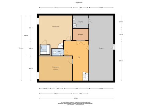 Souterrain met grote gang, speelkamer met vossenkuil, ruime wc met fonteintje, fitnessruimte met vossenkuil, droge sauna en solarium/stoomdouche, dubbele deuren met geëtst glas naar wijnkelder, berging en technische ruimte met grote buitendeur naar souterrain ingang tuin met Monkey Pull-Up Bar.