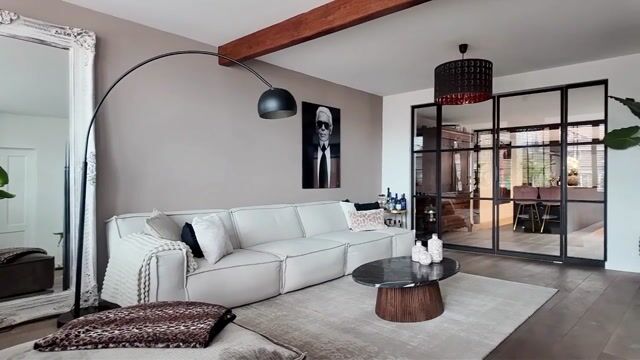 Links betreedt u dan de heerlijk diepe woonruimte waarbij de woonkamer middels een brede doorgang met stalen taatsdeuren doorloopt in een ruime woonkeuken. De (eerste) woonkamer ligt hier aan de gezellige straatzijde bij de grote “winkelramen” met kleine ruitverdeling. Er is volop plek om een royale zithoek te plaatsen.
