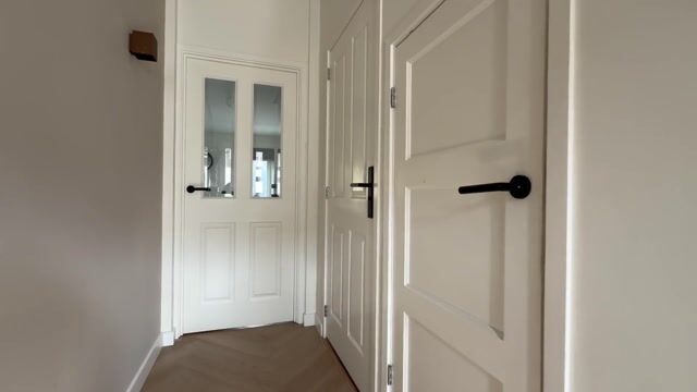 Bij binnenkomst valt direct de moderne en sfeervolle uitstraling op, dankzij de visgraatvloeren, hoge witte plinten en strak gestucte wanden die naadloos op elkaar aansluiten.