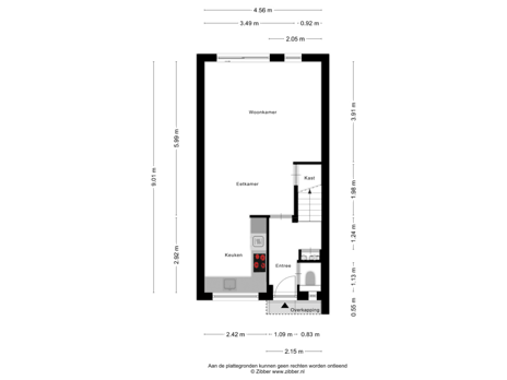 - 49 m² (9,00 meter diep en 5,40 meter breed)