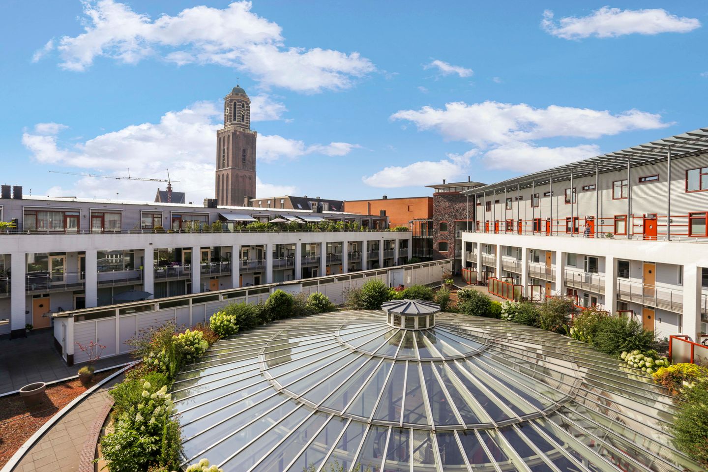 Op de eerste verdieping bevindt zich het appartement. Dit appartement heeft de ingang via de mooie binnentuin. Hier bevindt zich ook het royale eigen terras met de ligging op het westen en de royale eigen berging. Het terras meet 5,30 x 5,00meter, waardoor je er heerlijk met een grote loungeset of eettafel kunt vertoeven. Je zult je er bovendien over verbazen hoe rustig het hier is, terwijl je toch middenin de binnenstad woont!