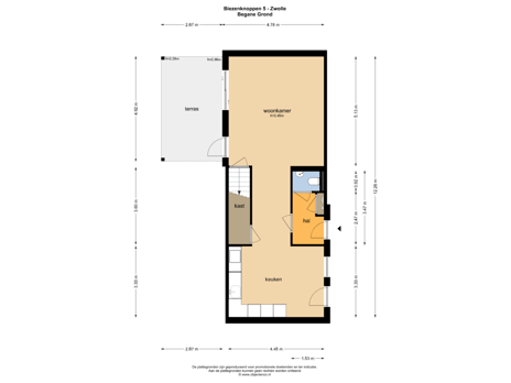 - 57 m² (11,00 meter diep en 5,20 meter breed)