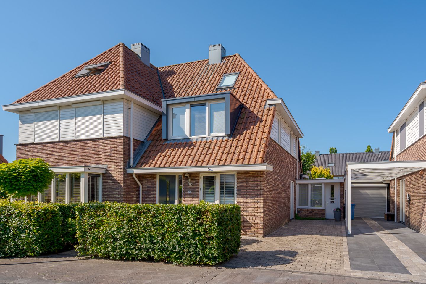 De tweede verdieping biedt een ruime vierde slaapkamer met maar liefst drie dakramen en veel bergruimte achter de knieschotten. De CV-installatie (2019) is netjes weggewerkt achter een vaste kast in deze kamer. Op de voorzolder vindt u de wasmachineopstelling én een airconditioning.