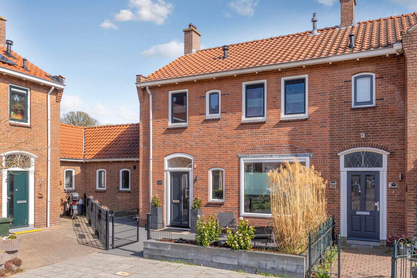 Zowel de voor- als achtertuin zijn met zorg aangelegd. De voortuin is betegeld en biedt ruimte voor een zitje, terwijl de diepe en extra brede achtertuin een heerlijke plek is om van de middagzon te genieten. Hier vind je een combinatie van sierbestrating, vaste plantenbakken en borders. Met de achterom is ook praktisch gemak gegarandeerd.
